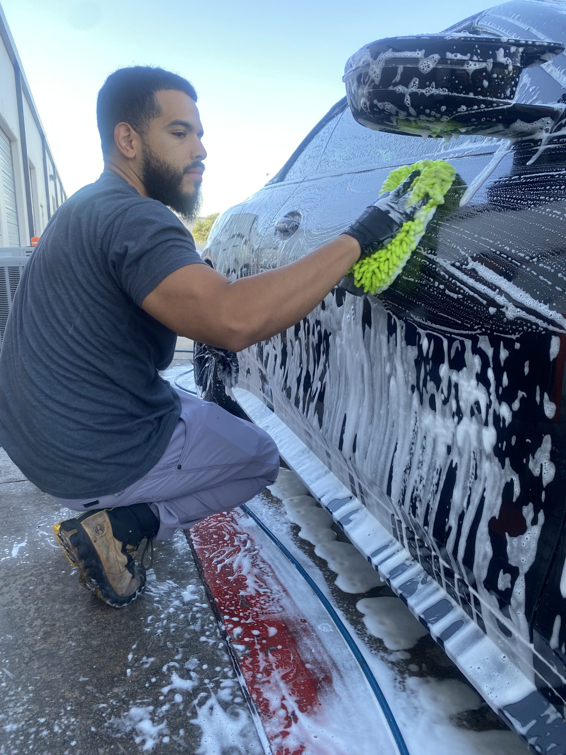 A thorough prep wash and chemical decon. Wheels and tires are cleaned & prepped.